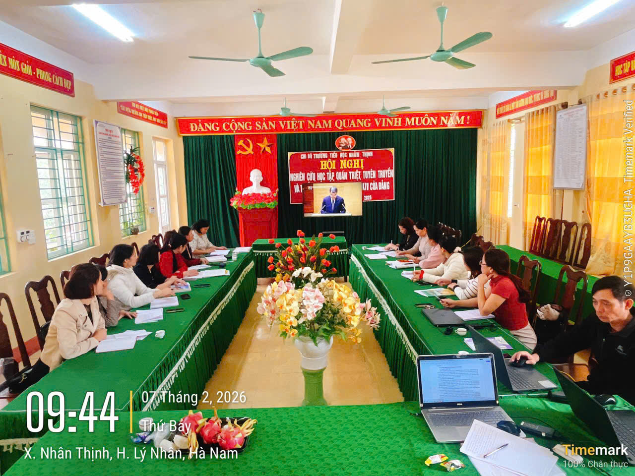 Chi bộ trường Tiểu học Nhân Thịnh (xã Nhân Hà) tham gia Hội nghị trực tuyến toàn quốc về nghiên cứu, học tập, quán triệt, tuyên truyền và triển khai thực hiện Nghị quyết Đại hội đại biểu toàn quốc lần thứ XIV của Đảng.